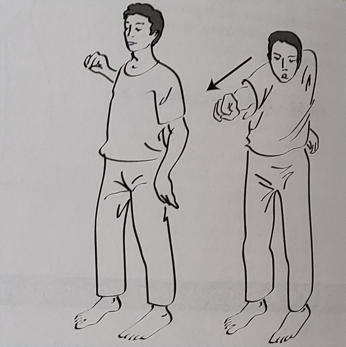 Cet exercice est tiré du livre « Sophrologie » du Docteur Patrick-André Chéné. Toujours debout, inspirez en levant le bras droit, poing fermé à la hauteur de l’épaule, rétention, concentration, puis sur une expiration forte, projetez le bras droit devant vous, comme pour pulvériser votre peur. Ensuite très doucement, laissez le bras tendu devant vous, ouvrez les doigts l’un après l’autre et faites redescendre la main le plus lentement possible en accueillant toutes les sensations (poids du bras, chaleur, picotements,…). Récupérez puis faites la même chose avec le bras gauche. Et enfin avec les 2 bras en même temps.
